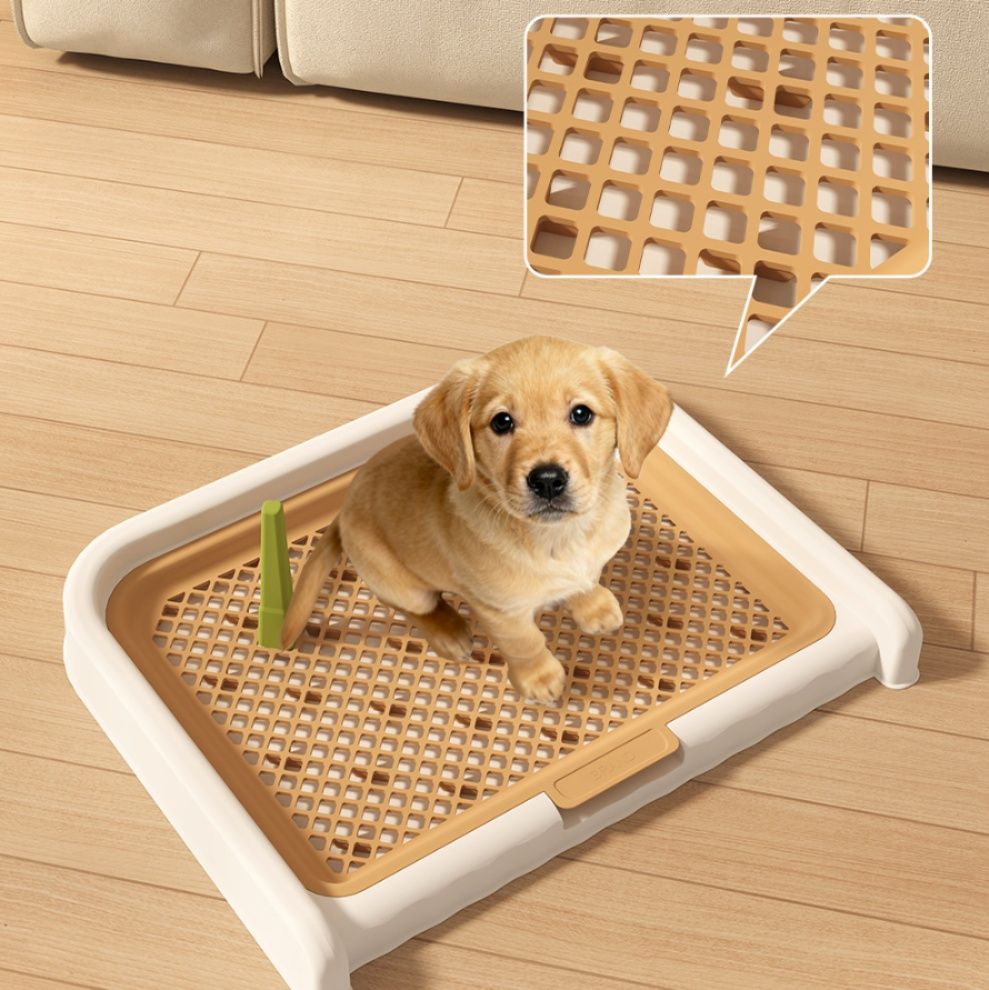 中型犬の体格に合ったサイズ設計で、固定柱付きのメッシュ構造トイレトレーです。
