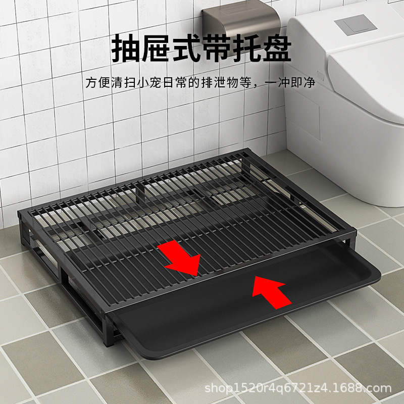 格子状の表面と引き出し式の受け皿で構成された二層構造により、排泄物の処理が簡単に行えます。