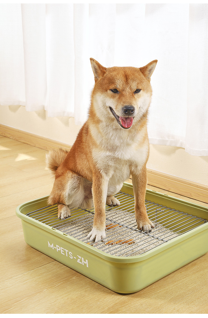 取り外し可能な金属網が付いた犬トイレ用のトレーです。