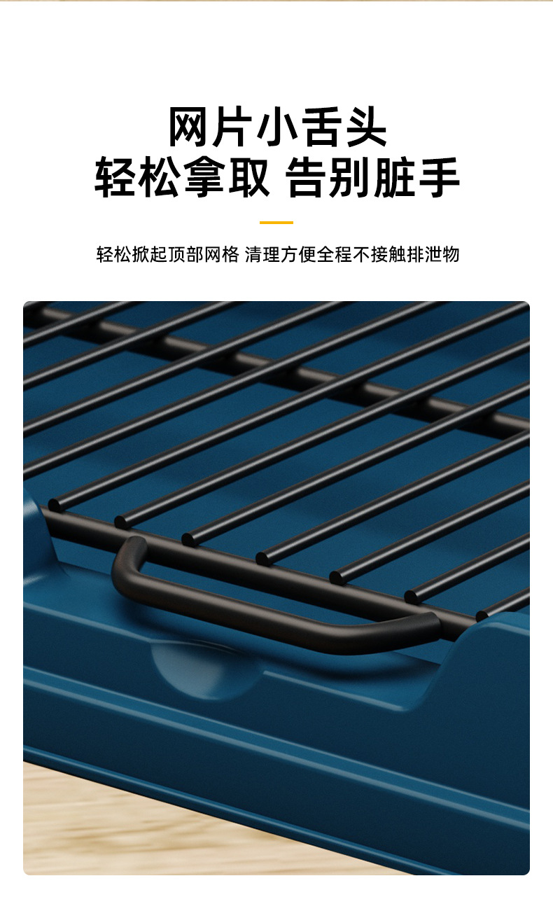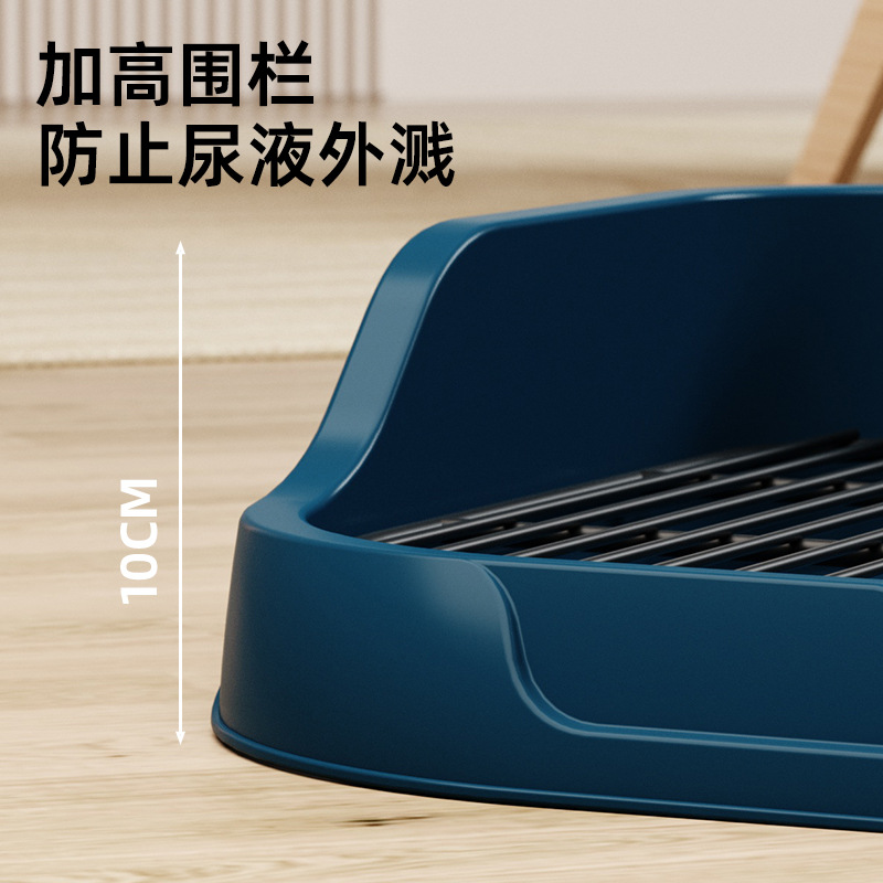 高さ10センチメートルの囲栅設計で尿の飛び散りをしっかり防止し、床を清潔に保ちます。