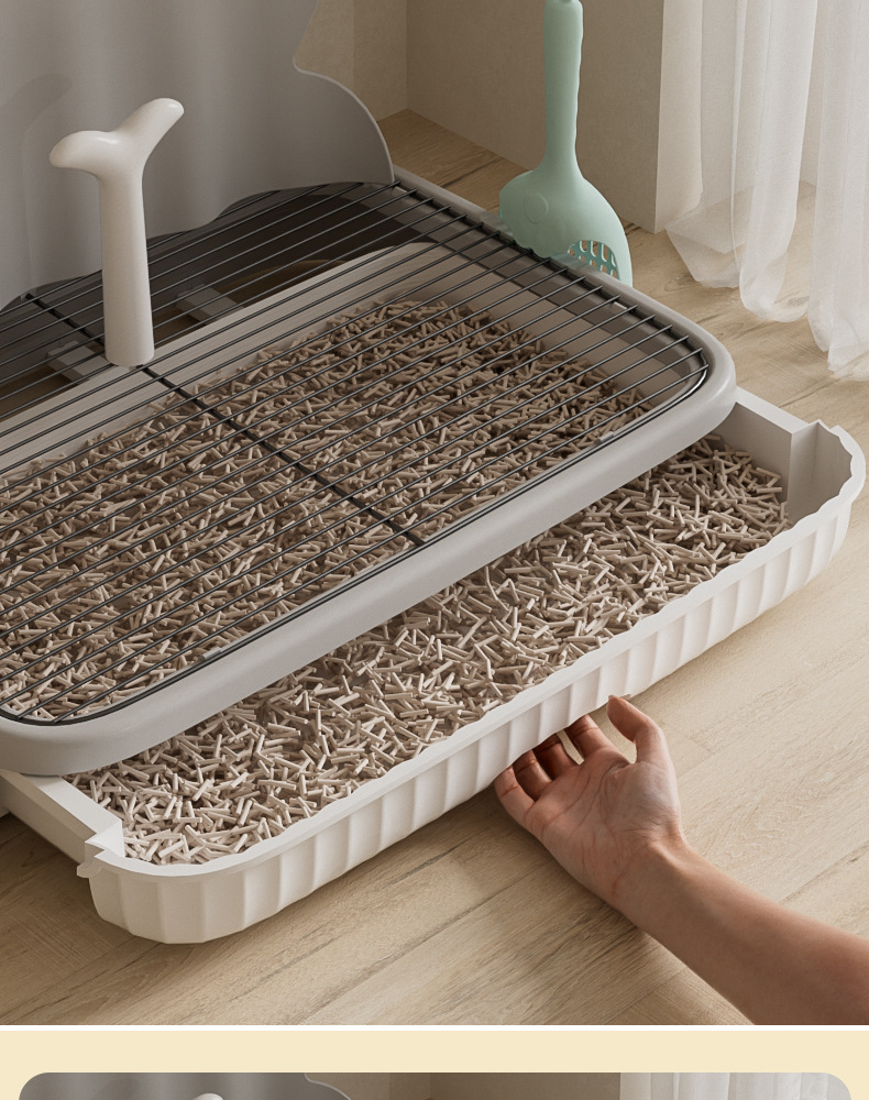 固定ポール付きでシートのズレを防ぎ、掃除用スコップも付属しているので日々のお手入れも簡単です。