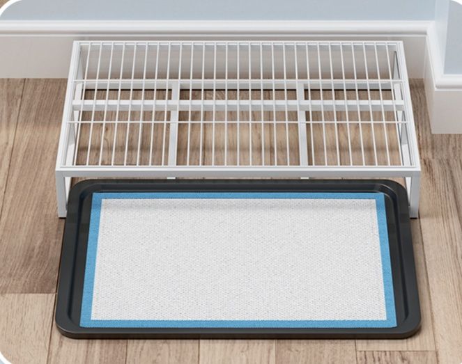上部の格子網が愛犬の足を清潔に保ち、下段のトレーは簡単に引き出せるので日々のお手入れが楽々です。