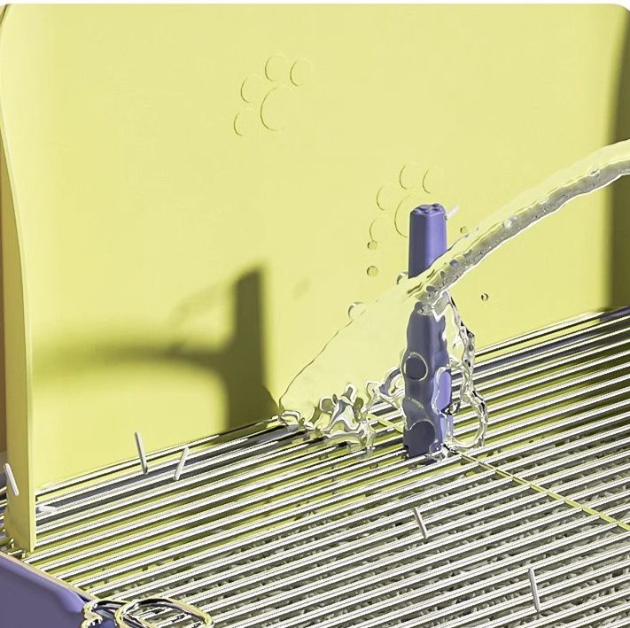 飛散防止の壁が四方に配置され、排泄物の飛び散りを効果的に防ぎます。