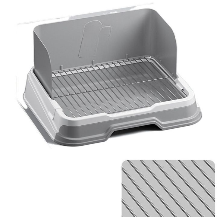三方向の高い壁でおしっこの飛び散りを防ぐはみ出し防止機能付きの犬トイレです。