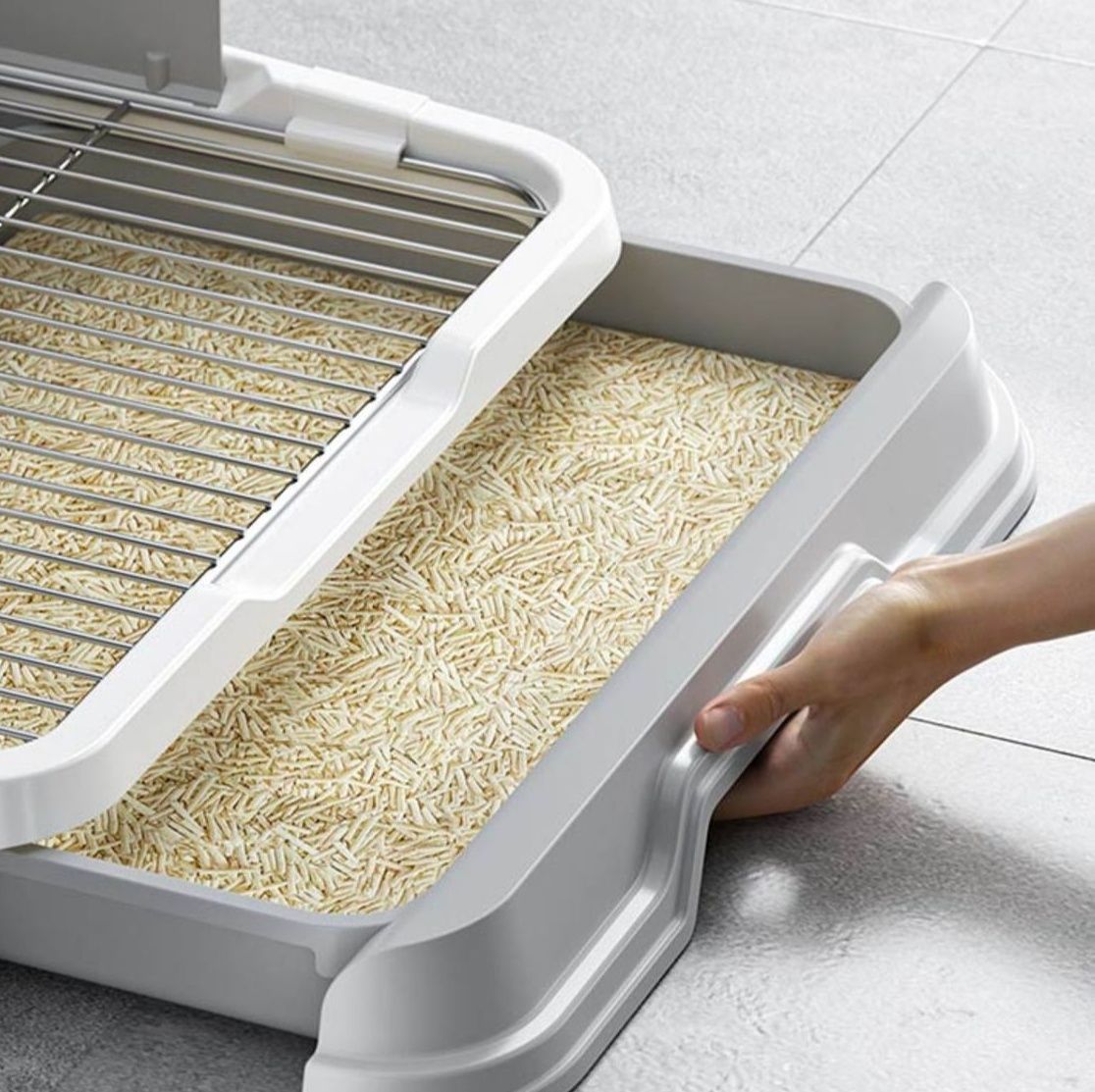 引き出し式のトレー構造で掃除が簡単にでき、金網メッシュが足元を清潔に保ちます。