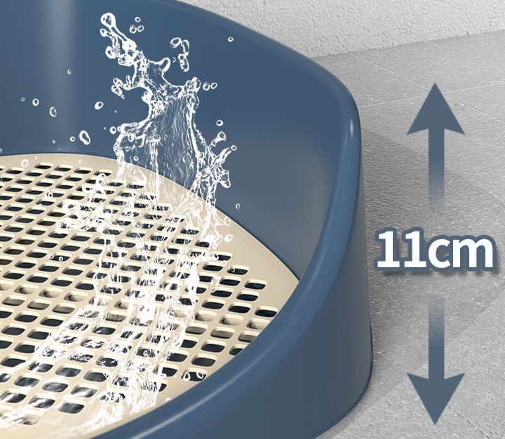11センチの高い縁が尿の飛び散りをしっかり防止し、床を清潔に保ちます。
